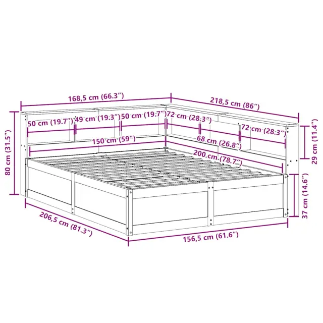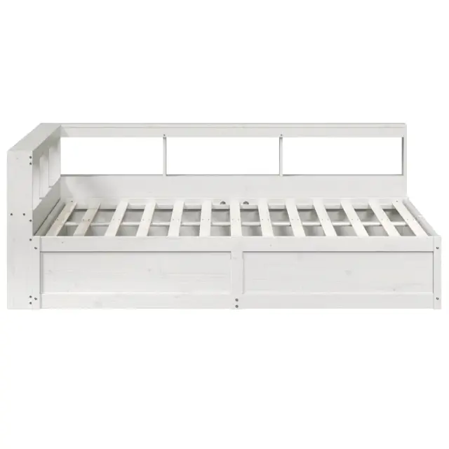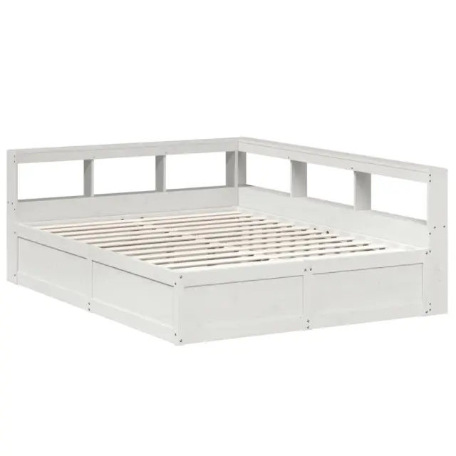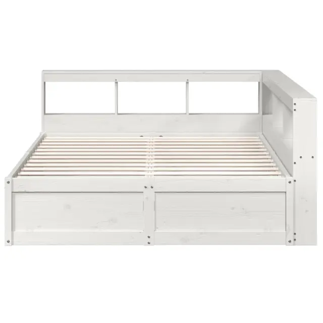 vidaXL Knjižna postelja brez vzmetnice bela 150x200 cm trdna borovina