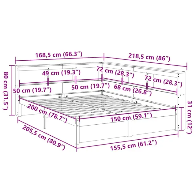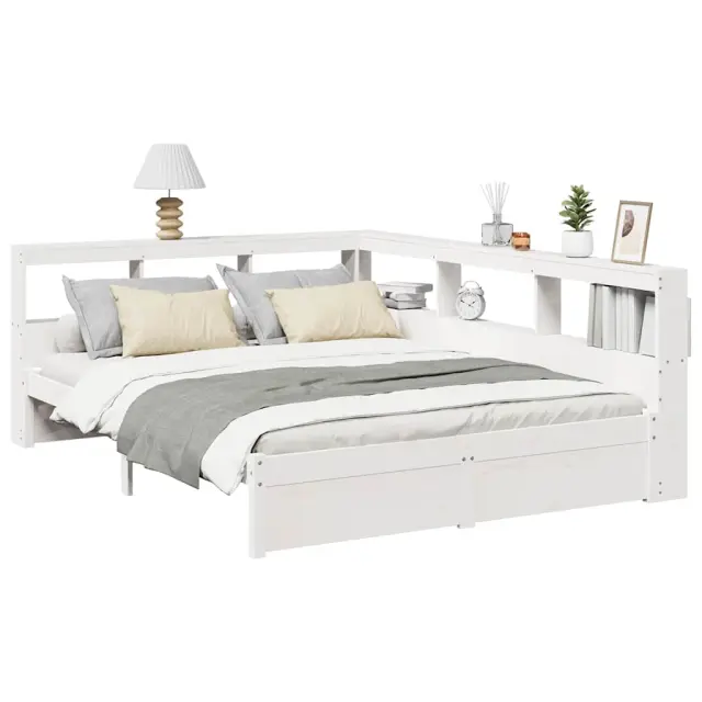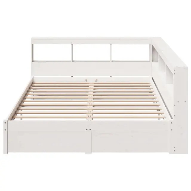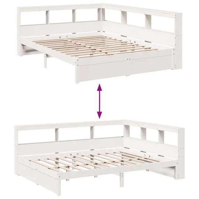 vidaXL Knjižna postelja brez vzmetnice bela 150x200 cm trdna borovina