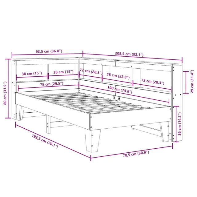 vidaXL Knjižna postelja brez vzmetnice bela 75x190 cm trdna borovina
