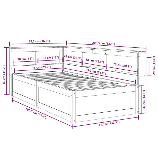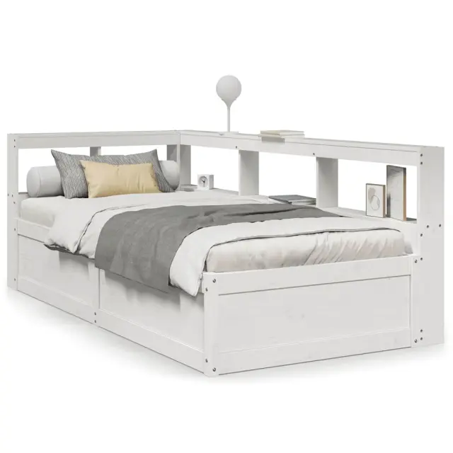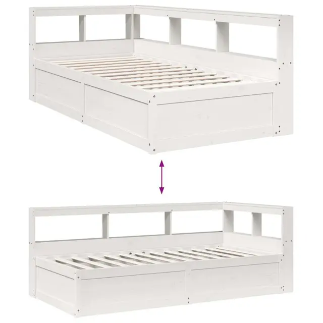 vidaXL Knjižna postelja brez vzmetnice bela 75x190 cm trdna borovina