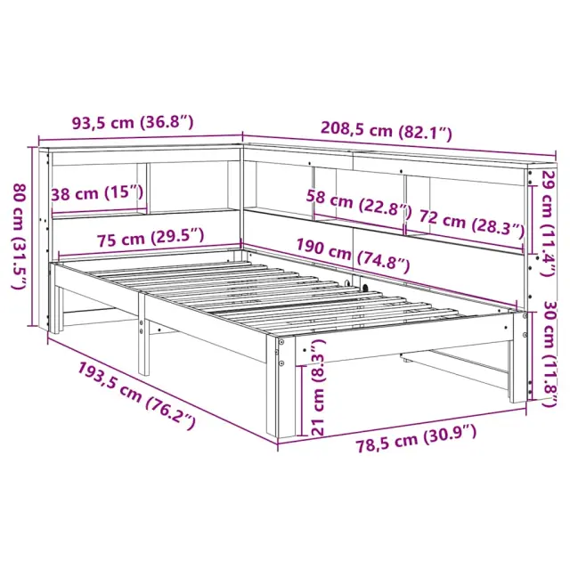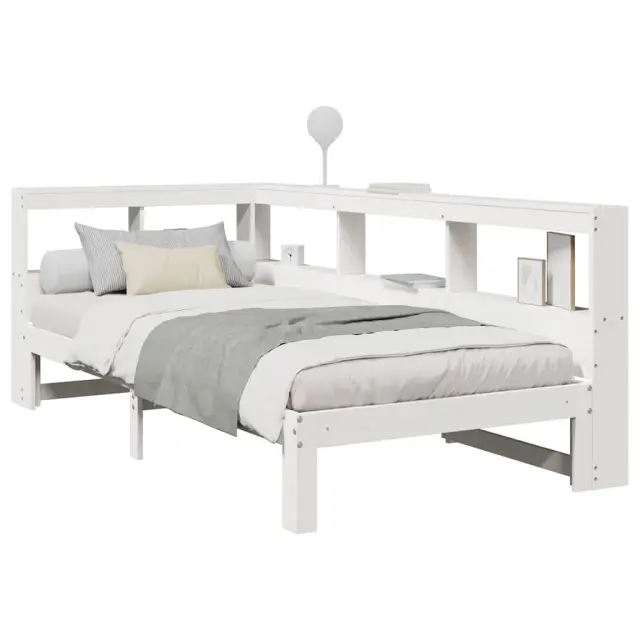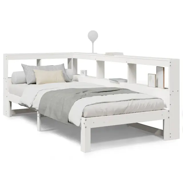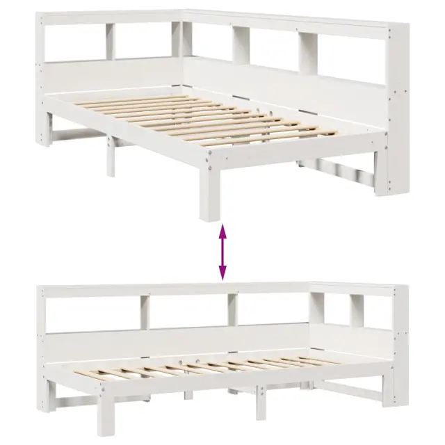 vidaXL Knjižna postelja brez vzmetnice bela 75x190 cm trdna borovina