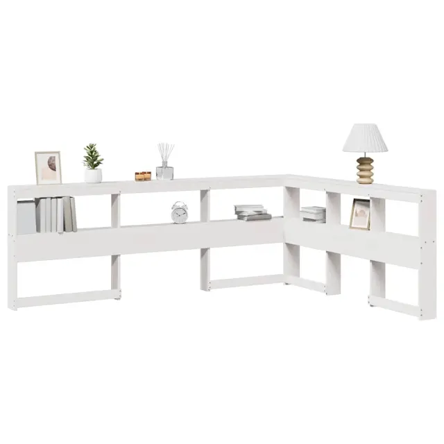 vidaXL Knjižnica vzglavje L-oblike bela 150 cm trdna borovina