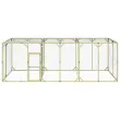 Ta kokošnjak je popolna zunanja ograda za udobno in varno namestitev vaših piščancev, kokoši, rac in drugih malih živali. Trdna borovina: Trdna borovina je čudovit naravni material. Borovina ima ravne vzorce, grče pa dajejo materialu njegov značilen, rustikalen videz.Poliestrska streha: Streha je izdelana iz 100 % poliestra, ki je vodoodporen in je odlična izbira za vlažne ali deževne razmere.Vrata, ki se lahko zaklenejo: Kokošnjak ima vrata, ki jih je mogoče enostavno odpreti in zakleniti, da bodo živali na varnem.Enostavno vzdrževanje: Kokošnjak je mogoče enostavno očistiti z vlažno krpo ali vodo za enostavno vzdrževanje.Žična mreža: Zahvaljujoč žični mreži imate lahko svoje živali vedno na očeh. Opomba:Vsakemu izdelku je priložen priročnik za enostavno sestavljanje.Material: Trdna borovina, zelena impregnacija, pocinkano jeklo, poliesterDimenzije: 600 x 300 x 200 cm (Š x G x V) 3102986