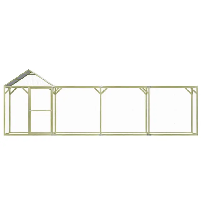 Naš praktičen in prostoren lesen kokošnjak je odlična izbira za zunanjo ograditev vaših piščancev, kokoši, rac, gosi in drugih manjših živali, saj bo poskrbel za njihovo udobje. Ta kokošnjak iz impregnirane borovine je trpežen ter odporen na vremenske vplive in trohnenje. Streha iz 100 % poliestra je vodoodporna. Vrata se preprosto odpirajo, opremljena pa so tudi z zapahi za zaklepanje. Zahvaljujoč pocinkani jekleni žični mreži boste dobro videli svoje živali. Kokošnjak je treba sestaviti.Barva: Zelena in srebrnaMaterial: Okvir iz impregnirane borovine + pocinkana jeklena žica + streha iz 100 % poliestraCelotne dimenzije: 6 x 1,5 x 2 m (Š x G x V)Primerno za piščance, kokoši, race, gosi itd.Tkanina: Poliester: 100% 278402