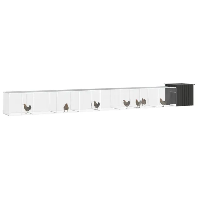 Ta kokošnjak iz pocinkanega jekla bo vašim piščancem, kokošim, racam in drugim malim živalim zagotovil udobje in varnost. Kokošnjak vse v enem: Kokošnjak omogoča več načinov uporabe: Počitek, igra, gibanje ali samo zaščita vaših malih živali. To bo popoln raj za vaše kokoši!Robustna konstrukcija: Zahvaljujoč robustni pocinkani jekleni konstrukciji je kokošnjak trpežen in dolgotrajen.Dodatna varnost: Vrata na tečajih s sistemom zapaha zagotavljajo dodatno varnost in zaščito za vaše živali.Prezračevana zasnova: Ograda za kokoši ima mrežasto zasnovo, zaradi česar je dobro prezračena, da ohranja svež in čist zrak. Tako je kokošnjak koristen za zdravje vaših malih prijateljev.Podaljšek prostora: S priloženim podaljškom kletke lahko preprosto ustvarite prostoren bivalni prostor za svoje hišne ljubljenčke, kjer se lahko prosto igrajo in počivajo v ogradi. Opomba:Vsakemu izdelku je priložen priročnik za enostavno sestavljanje.Barva: AntracitnaMaterial: Pocinkano jekloCelotne dimenzije: 900 x 91 x 100 cm (Š x G x V)Velikost vrat: 46,5 x 74,5 cm (Š x V)Mere podaljška kletke (vsakega): 100 x 90 x 90 cm (Š x G x V)Paket vsebuje:1 x Kokošnjak7 x Podaljšek kletke 3106458