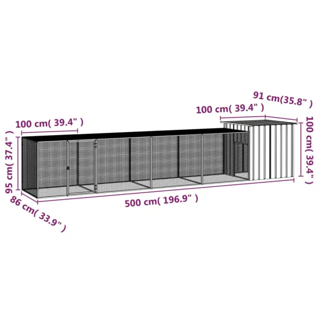 vidaXL Kokošnjak antracit 500x91x100 cm pocinkano jeklo