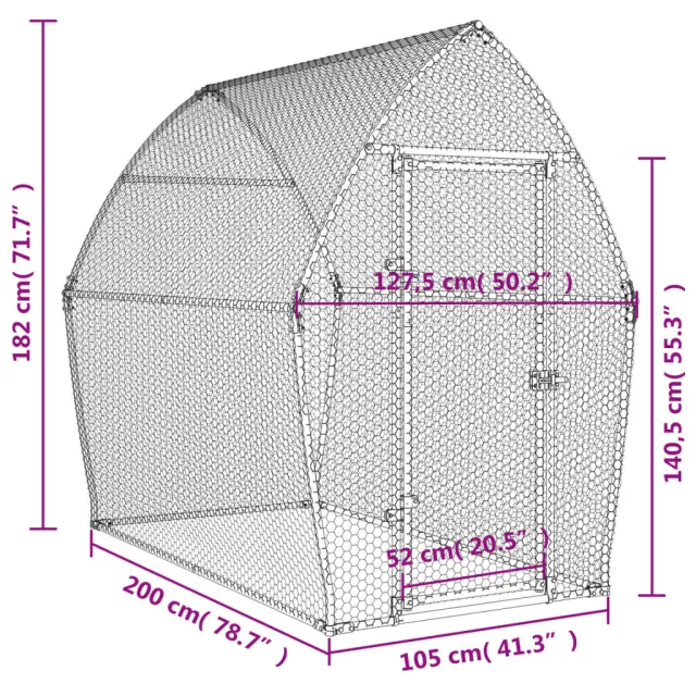 vidaXL Kokošnjak srebrn 200x105x182 cm pocinkano jeklo