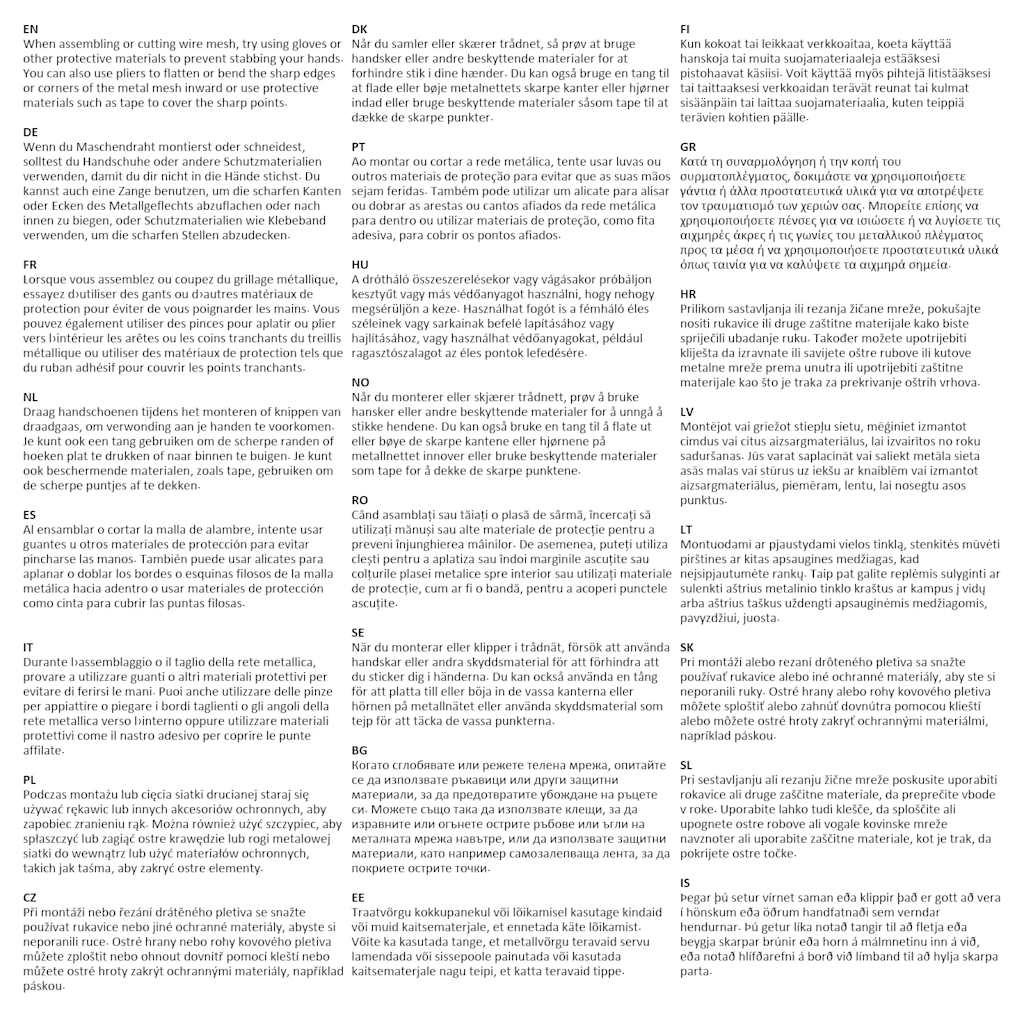 Pri sestavljanju ali rezanju žične mreže poskusite uporabiti rokavice ali druge zaščitne materiale, da preprečite vbode v roke. Uporabite lahko tudi klešče, da sploščite ali upognete ostre robove ali vogale kovinske mreže navznoter ali uporabite zaščitne materiale, kot je trak, da pokrijete ostre točke.