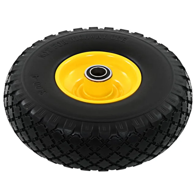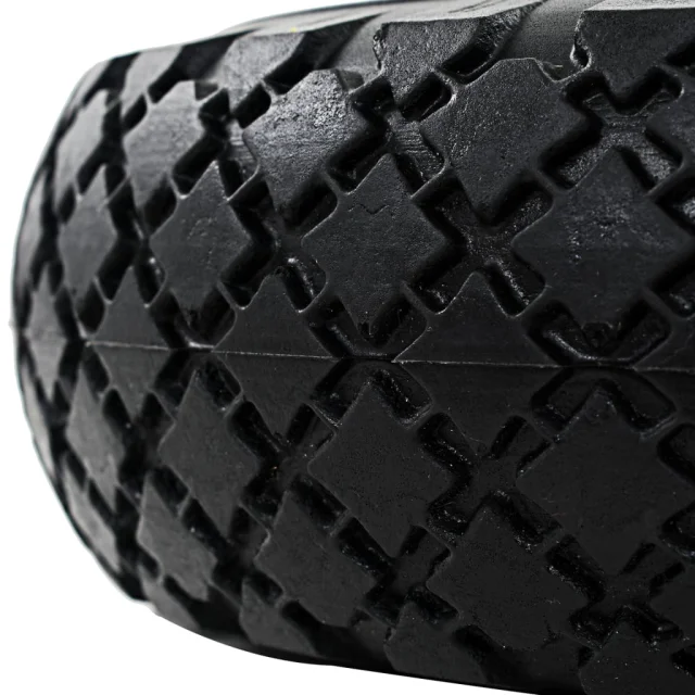 Trdni pnevmatiki sta izdelani iz trpežnega, na udarce odpornega PU elastomera in imata poseben dizajn, ki zagotavlja dodatni oprijem pri višji hitrosti. Platišči koles sta narejeni iz trdne kovine. Rezervni kolesi za voziček sta univerzalne velikosti, zato jih lahko enostavno namestite na vaš ročni voziček, voziček itd.