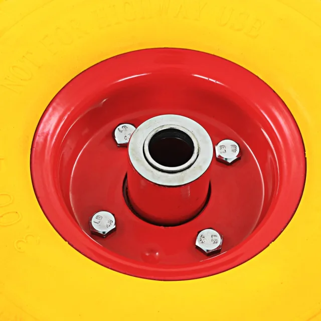 Trdni pnevmatiki sta izdelani iz trpežnega, na udarce odpornega PU elastomera in imata poseben dizajn, ki zagotavlja dodatni oprijem pri višji hitrosti. Platišči koles sta narejeni iz trdne kovine. Rezervni kolesi za voziček sta univerzalne velikosti, zato jih lahko enostavno namestite na vaš ročni voziček, voziček itd.