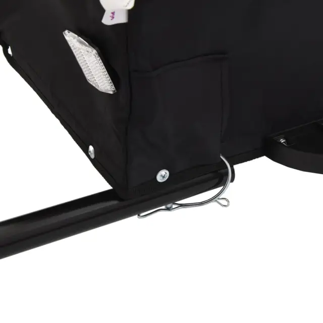 • Premišljeno oblikovanje: Prikolica za kolo ima vlečno kljuko, ki omogoča enostavno priključitev na kolo. Priložena je tudi varnostna zastavica za dodatno vidnost.