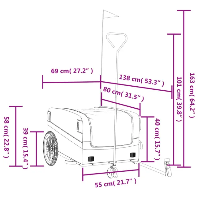 • Trden material: Železo je močan in trd material. Je zelo priljubljeno v industrijskih in pohištvenih konstrukcijah. Ta kolesarska tovorna prikolica je izdelana iz železa, zato je zelo trpežna in vzdržljiva.