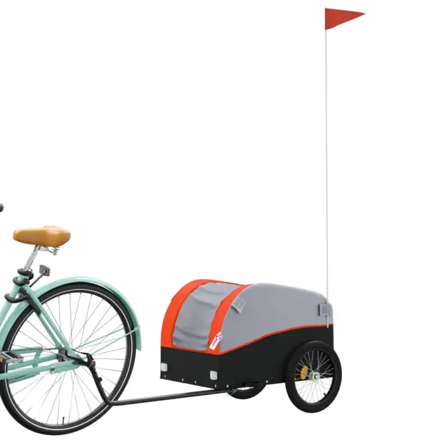 vidaXL Kolesarska prikolica črna in oranžna 30 kg železo
