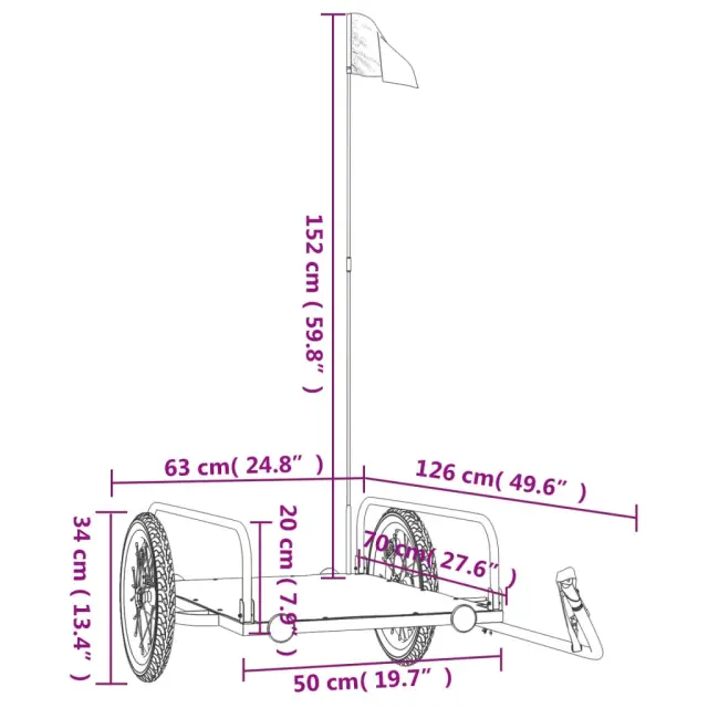 • Trden material: Železo je močan in trd material. Je zelo priljubljeno v industrijskih in pohištvenih konstrukcijah. Ta kolesarska tovorna prikolica je izdelana iz železa, zato je zelo trpežna in vzdržljiva.