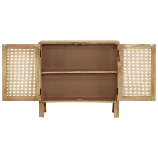Trden mangov les je tropski trdi les. Je dovolj močan za prenašanje teže, pa tudi odporen na obrabo in uporabo. Izvrstna ročna izdelava in čudoviti vzorci lesa zagotavljajo, da je vsaka stranska omarica malo drugačna od drugih. Lesena omarica ima veliko prostora za shranjevanje, zato boste lahko razstavili ali shranili različne predmete, ki jih želite organizirati.