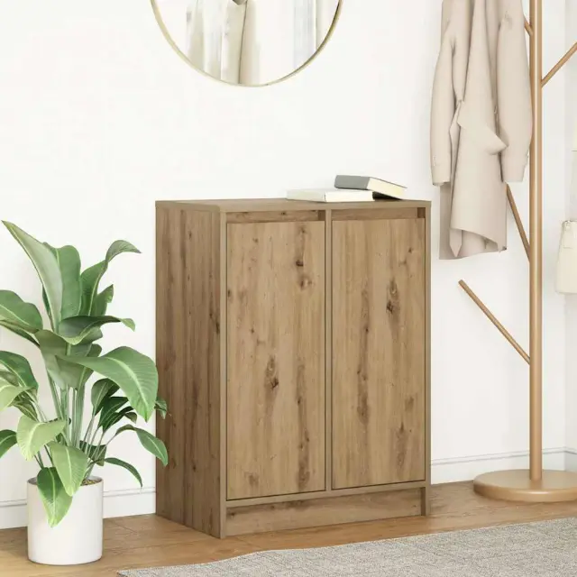 Stranska omara ponuja veliko prostora za shranjevanje, saj pomaga ohranjati red in organiziranost v sobi, hkrati pa združuje praktičnost in estetiko. Stabilen in trpežen material: Inženirski les je trpežen in stabilen material z gladko površino, ki je odporen na vlago, krivljenje in cepljenje, zato je zanesljiva izbira za različne projekte.Veliko prostora za shranjevanje: V bifeju je dovolj prostora za shranjevanje jedilnih potrebščin in drugih gospodinjskih predmetov, da so ti urejeni in dosegljivi.Praktična vrata: Vrata omare za shranjevanje zagotavljajo zaprt prostor za shranjevanje, da bodo vaše stvari urejene, zaščitene in skrite.Široka uporaba: To stransko omarico lahko uporabite kot kopalniško ali kuhinjsko omarico ali kot elegantno omarico za shranjevanje v spalnicah, toaletnih prostorih, predsobah, hodnikih in pisarnah, jedilnicah in drugih bivalnih prostorih.Enostavno vzdrževanje: Zaradi gladke površine je omarico enostavno očistiti z vlažno krpo, saj ne potrebuje veliko vzdrževanja. Opozorilo:Za preprečitev prevračanja je treba ta izdelek uporabiti s priloženo napravo za pritrditev na steno.Barva: Artisan hrastMaterial: Inženirski lesCelotne dimenzije: 57 x 34 x 76 cm (Š x G x V)Število vrat: 2Število polic: 2Največja skupna nosilnost: 60 kgNajvečja nosilnost police: 20 kgPotrebno sestavljanje: Da 861624