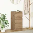 Stranska omara ponuja veliko prostora za shranjevanje, saj pomaga ohranjati red in organiziranost v sobi, hkrati pa združuje praktičnost in estetiko. Stabilen in trpežen material: Inženirski les je trpežen in stabilen material z gladko površino, ki je odporen na vlago, krivljenje in cepljenje, zato je zanesljiva izbira za različne projekte.Veliko prostora za shranjevanje: V bifeju je dovolj prostora za shranjevanje jedilnih potrebščin in drugih gospodinjskih predmetov, da so ti urejeni in dosegljivi.Robustna mizna plošča: Na omarico za shranjevanje lahko postavite okrasne predmete, albume s fotografijami ali manjše rastline.Široka uporaba: To stransko omarico lahko uporabite kot kopalniško ali kuhinjsko omarico ali kot elegantno omarico za shranjevanje v spalnicah, toaletnih prostorih, predsobah, hodnikih in pisarnah, jedilnicah in drugih bivalnih prostorih.Enostavno vzdrževanje: Zaradi gladke površine je omarico enostavno očistiti z vlažno krpo, saj ne potrebuje veliko vzdrževanja. Opozorilo:Za preprečitev prevračanja je treba ta izdelek uporabiti s priloženo napravo za pritrditev na steno.Barva: Artisan hrastMaterial: Inženirski lesCelotne dimenzije: 37,5 x 35 x 76 cm (Š x G x V)Dimenzije predalov: 37 x 28,5 x 20 cm (Š x G x V)Število predalov: 3Največja skupna nosilnost: 60 kgNajvečja nosilnost predala: 5 kgPotrebno sestavljanje: Da 861732