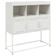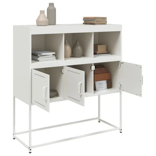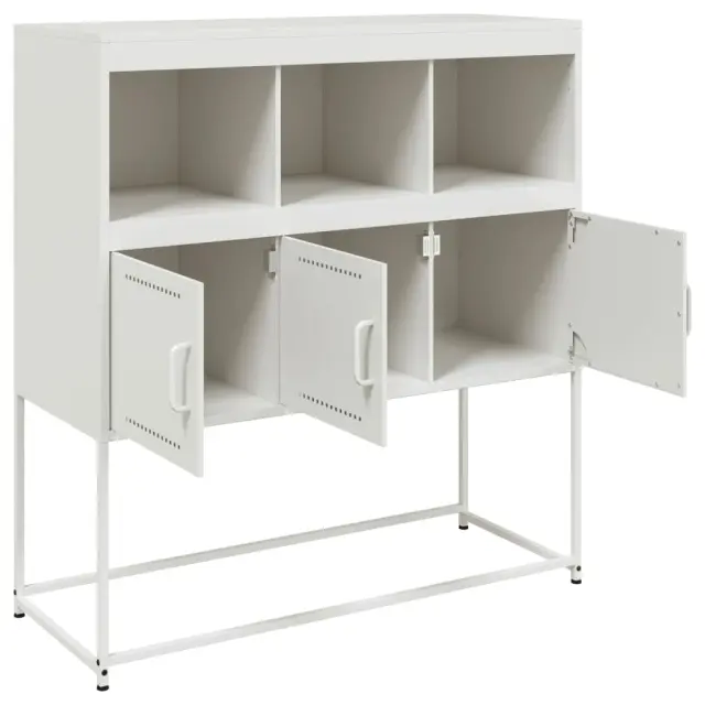 Ali iščete elegantno komodo? Ta dobro zasnovana stranska omarica bo vašim notranjim prostorom dodala eleganten čar! Trpežen material: Jeklo je izjemno trd in močan material. Ponuja trdnost in stabilnost. Hladno valjane jeklene plošče imajo dobro kakovost površine in visoko dimenzijsko natančnost.Veliko prostora za shranjevanje: Ta komoda ponuja priročen prostor za shranjevanje vaših revij, knjig, daljinskih upravljalnikov in drugih majhnih predmetov, da bodo lepo urejeni in na dosegu roke.Enostavno vzdrževanje: Omarico je enostavno očistiti z vlažno krpo, saj ne potrebuje veliko vzdrževanja. Opozorilo:Da preprečite prevračanje, morate ta izdelek uporabljati z napravo za pritrditev na steno (ni priložena).Barva: BelaMaterial: Hladno valjano jekloDimenzije: 100,5 x 39 x 107 cm (D x Š x V)S 3 predelkiS tremi vratiPotrebno sestavljanje: DaLegal Documents:Več informacij o tem, kako preprečiti prevračanje pohištva, je na voljo tukaj 846595