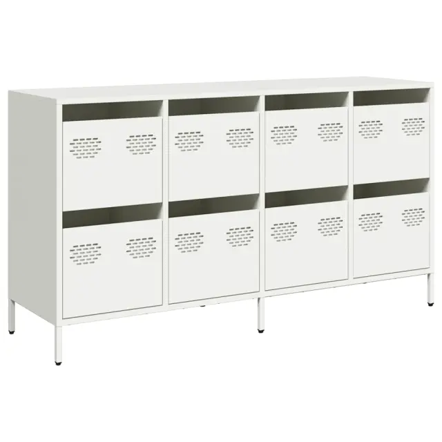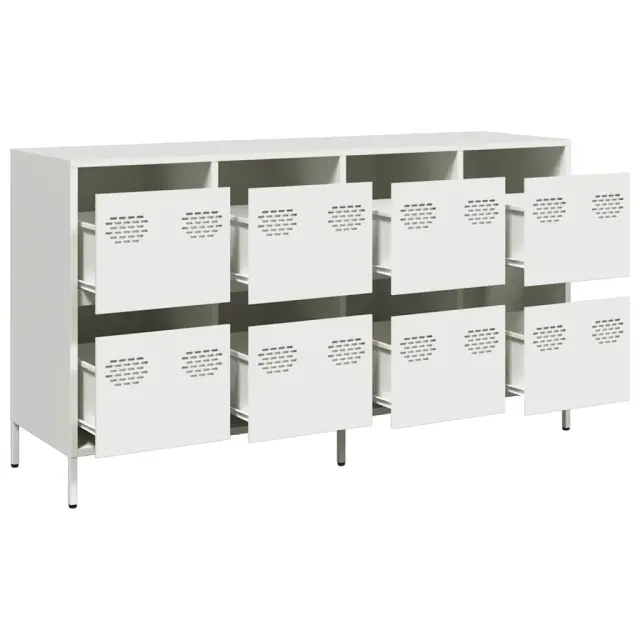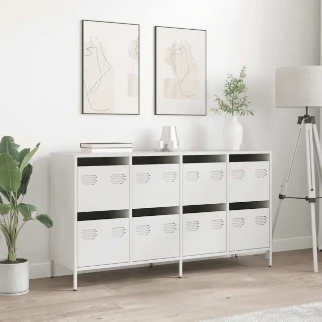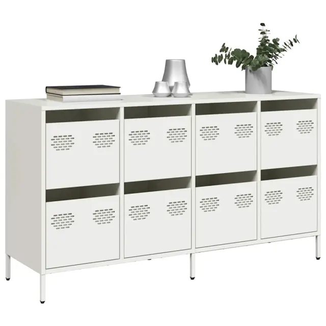 Ta praktična komoda je resnično privlačen dodatek za vaš dom. Robustno in stabilno: Hladno valjano jeklo je vrsta nizkoogljičnega jekla, ki se proizvaja s postopkom hladnega valjanja in obdeluje pri skoraj običajnih sobnih temperaturah. Hladno valjano jeklo ima bolj gladko površino, večjo trdnost in natančnost.Veliko prostora za shranjevanje: V omarici s predali je dovolj prostora za shranjevanje, da bodo različne vsakodnevne potrebščine dobro urejene in dosegljive.Robustna mizna plošča: Na njej lahko postavite okrasne predmete, albume s fotografijami ali manjše rastline.Enostavno vzdrževanje: Zaradi gladke površine je kovinsko kredenco enostavno očistiti z vlažno krpo in zahteva manj vzdrževanja. Opozorilo:Za preprečitev prevračanja je treba ta izdelek uporabiti s priloženo napravo za pritrditev na steno.Barva: BelaMaterial: Hladno valjano jekloDimenzije: 135 x 39 x 73,5 cm (D x Š x V)Z 8 predaliPotrebno sestavljanje: Da 3307172