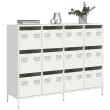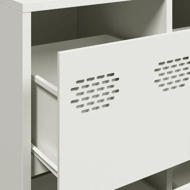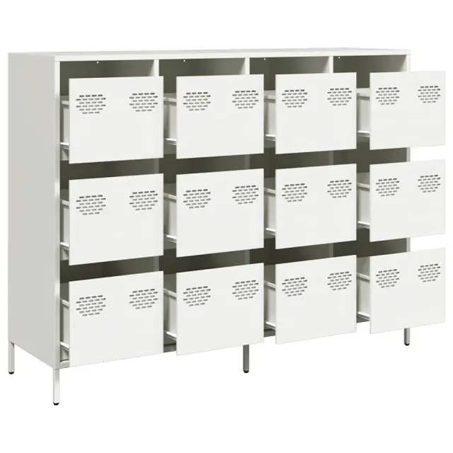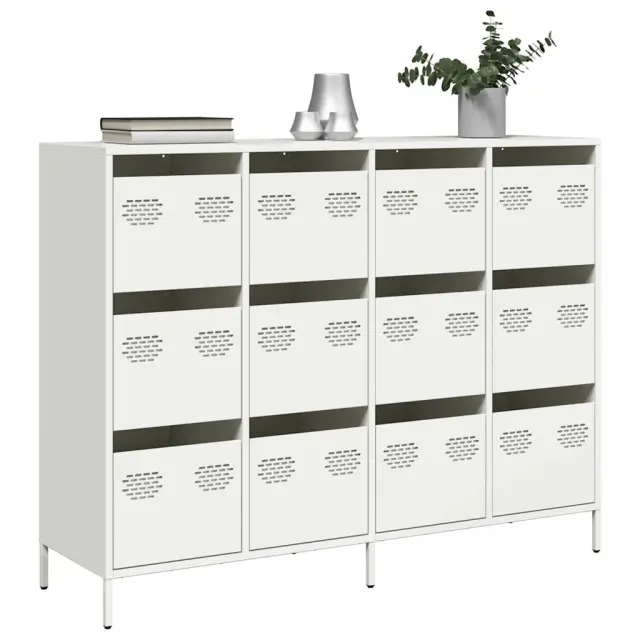 Ta praktična komoda je resnično privlačen dodatek za vaš dom. Robustno in stabilno: Hladno valjano jeklo je vrsta nizkoogljičnega jekla, ki se proizvaja s postopkom hladnega valjanja in obdeluje pri skoraj običajnih sobnih temperaturah. Hladno valjano jeklo ima bolj gladko površino, večjo trdnost in natančnost.Veliko prostora za shranjevanje: V omarici s predali je dovolj prostora za shranjevanje, da bodo različne vsakodnevne potrebščine dobro urejene in dosegljive.Robustna mizna plošča: Na njej lahko postavite okrasne predmete, albume s fotografijami ali manjše rastline.Enostavno vzdrževanje: Zaradi gladke površine je kovinsko kredenco enostavno očistiti z vlažno krpo in zahteva manj vzdrževanja. Opozorilo:Za preprečitev prevračanja je treba ta izdelek uporabiti s priloženo napravo za pritrditev na steno.Barva: BelaMaterial: Hladno valjano jekloDimenzije: 135 x 39 x 103,5 cm (D x Š x V)Z 12 predaliPotrebno sestavljanje: Da 3307178