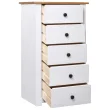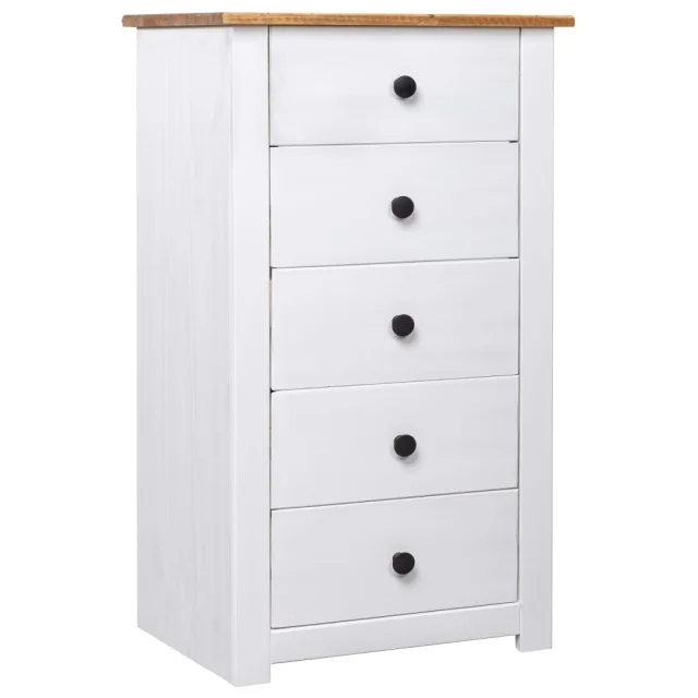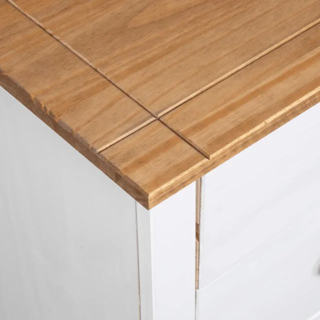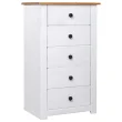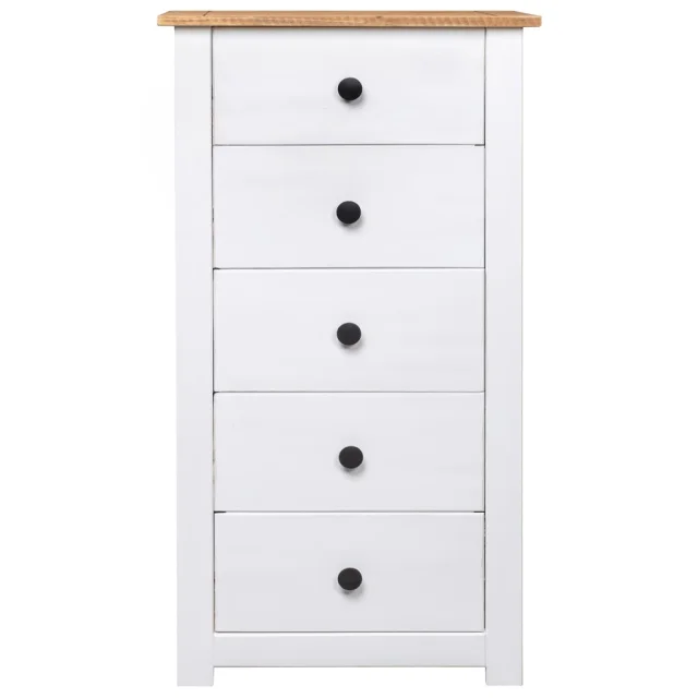 Ta omarica s predali Panama je izdelana iz trdne borovine ter je izredno trpežna in stabilna. Komoda s svojimi 5 predali ponuja veliko prostora za shranjevanje. Poleg tega je močna površina mize idealna za postavitev okrasnih predmetov, foto okvirjev ali lončnic. Je enostavna za čiščenje s suho krpo. Stojalo za telefon je preprosto za sestavo.
