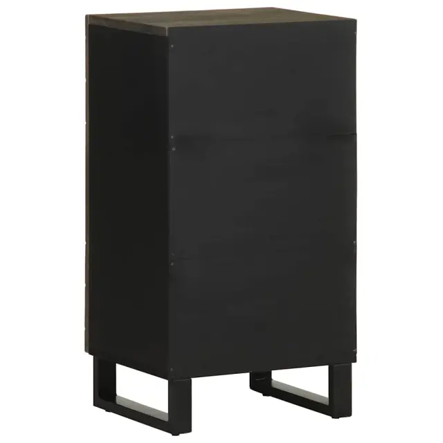 Organizirajte svoj prostor s to kredenco, ki je idealna za varno, urejeno in lahko dostopno shranjevanje vaših stvari v vsakem okolju. Robusten in stabilen material: Zaradi svoje izjemne trpežnosti in trdnosti je robusten mangov les, trden tropski les, zelo priljubljen za izdelavo pohištva. Zaradi čudovitih vzorcev lesa se vsak kos pohištva nekoliko razlikuje od ostalih.Kovinske noge: Za stabilnost, varnost in trdnost te omarice skrbijo robustne kovinske noge.Veliko prostora za shranjevanje: Ta omarica zagotavlja veliko prostora za shranjevanje, da so vaše vsakodnevne potrebščine dobro organizirane in na dosegu roke.Praktična vrata: Vrata omare za shranjevanje zagotavljajo zaprt prostor za shranjevanje, da bodo vaše stvari urejene, zaščitene in skrite. Opozorilo:Za preprečitev prevračanja je treba ta izdelek uporabiti s priloženo napravo za pritrditev na steno. Dobro je vedeti:Vsak izdelek je edinstven, saj se med seboj razlikujejo po barvah in zrnatosti. Dostava je naključna, kar zagotavlja ekskluzivnost in individualnost vašega izdelka.Barva: ČrnaMaterial: masivni mangov les s sivim peskanjem, inženirski les, kovinaDimenzije: 40 x 33 x 75 cm (Š x G x V)Višina nog: 10 cmPotrebno sestavljanje: Da 4017708