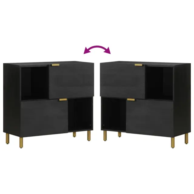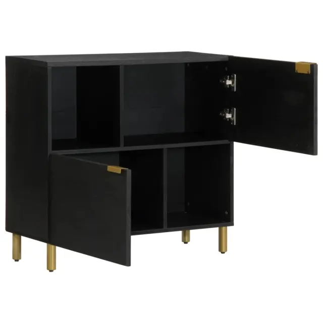 Ta kredenca je dekorativna in praktična za shranjevanje, zato je odličen dodatek za vaš dom. Stabilen in trpežen material: Inženirski les je trpežen in stabilen material z gladko površino, ki je odporen na vlago, krivljenje in cepljenje, zato je zanesljiva izbira za različne projekte.Praktični ročaji: Omare za shranjevanje so opremljene z ročaji, ki omogočajo udoben oprijem, omogočajo enostavno odpiranje in zapiranje omarice ter ji dodajajo dodatno lepoto.Praktična vrata: Vrata omarice za kredenco zagotavljajo zaprt prostor za shranjevanje, da bodo vaše stvari urejene, zaščitene in nevidne.Kovinske noge: Kovinske noge dodajo vaši notranjosti umirjen slog, hkrati pa zagotavljajo stabilnost.Široka uporaba: To stransko omarico lahko uporabite kot kopalniško ali kuhinjsko omarico ali kot elegantno omarico za shranjevanje v spalnicah, toaletnih prostorih, predsobah, hodnikih in pisarnah, jedilnicah in drugih bivalnih prostorih. Opozorilo:Za preprečitev prevračanja je treba ta izdelek uporabiti s priloženo napravo za pritrditev na steno.Barva: ČrnaMaterial: Inženirski les, trden mangov les, medeninaOverall dimensions: 80 x 33 x 75 cm (D x Š x V)Višina nog: 10 cmPotrebno sestavljanje: DaLegal Documents:Več informacij o tem, kako preprečiti prevračanje pohištva, je na voljo tukaj 4017675