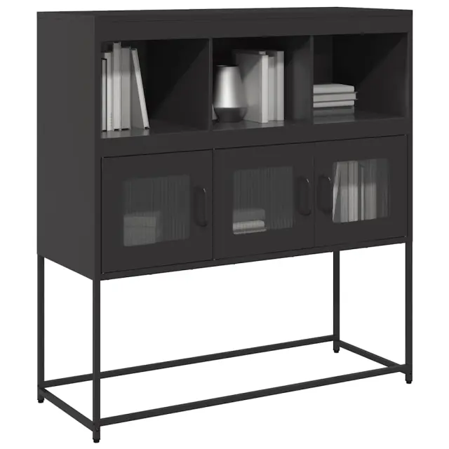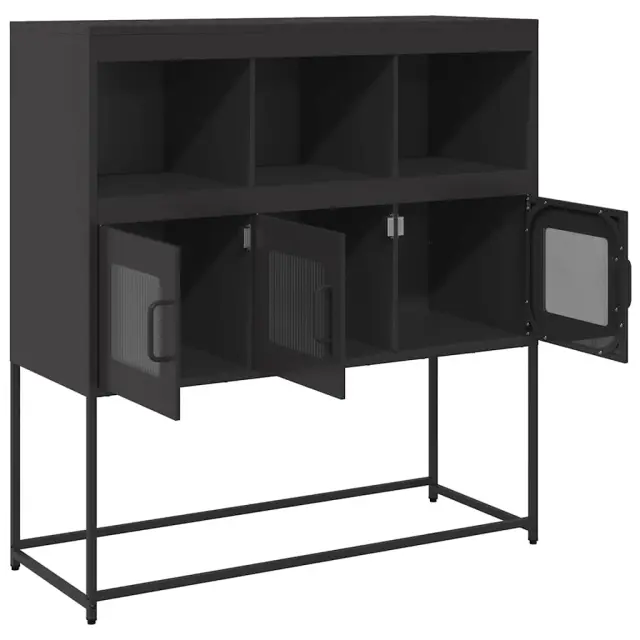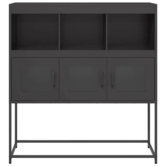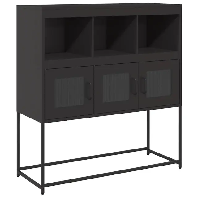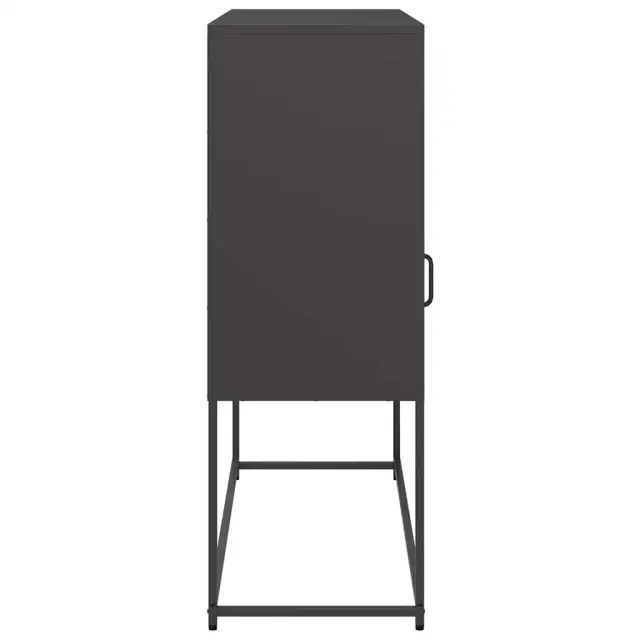 Ta kredenca je dekorativna in praktična za shranjevanje, zato je odličen dodatek za vaš dom. Stabilen in dolgotrajen okvir: Jeklo je močno, stabilno in trpežno, zato je idealna izbira za številne aplikacije, od proizvodnje pohištva do gradbeništva.Praktični ročaji: Omare za shranjevanje so opremljene z ročaji, ki omogočajo udoben oprijem, omogočajo enostavno odpiranje in zapiranje omarice ter ji dodajajo dodatno lepoto.Veliko prostora za shranjevanje: V bifeju je dovolj prostora za shranjevanje jedilnih potrebščin in drugih gospodinjskih predmetov, da so ti urejeni in dosegljivi.Kovinske noge: Kovinske noge dodajo vaši notranjosti umirjen slog, hkrati pa zagotavljajo stabilnost.Široka uporaba: To stransko omarico lahko uporabite kot kopalniško ali kuhinjsko omarico ali kot elegantno omarico za shranjevanje v spalnicah, toaletnih prostorih, predsobah, hodnikih in pisarnah, jedilnicah in drugih bivalnih prostorih. Opozorilo:Za preprečitev prevračanja je treba ta izdelek uporabiti s priloženo napravo za pritrditev na steno.Barva: ČrnaMaterial: Hladno valjano jekloDimenzije: 100,5 x 39 x 107 cm (D x Š x V)Potrebno sestavljanje: Da 853416