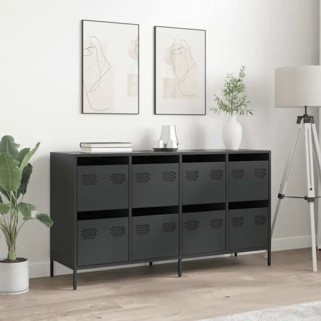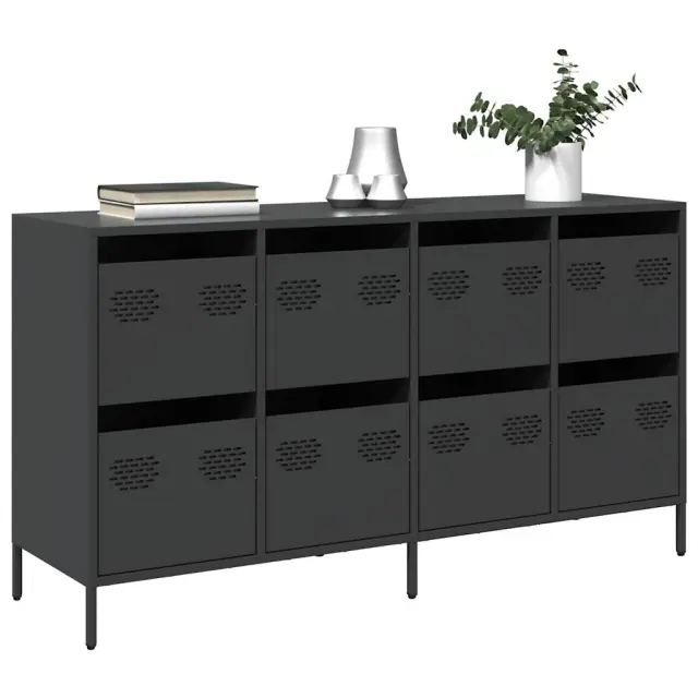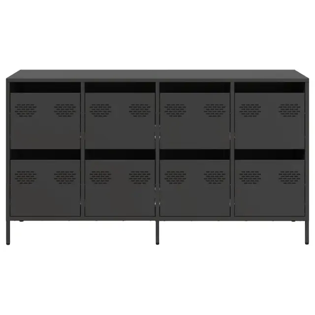 Ta praktična komoda je resnično privlačen dodatek za vaš dom. Robustno in stabilno: Hladno valjano jeklo je vrsta nizkoogljičnega jekla, ki se proizvaja s postopkom hladnega valjanja in obdeluje pri skoraj običajnih sobnih temperaturah. Hladno valjano jeklo ima bolj gladko površino, večjo trdnost in natančnost.Veliko prostora za shranjevanje: V omarici s predali je dovolj prostora za shranjevanje, da bodo različne vsakodnevne potrebščine dobro urejene in dosegljive.Robustna mizna plošča: Na njej lahko postavite okrasne predmete, albume s fotografijami ali manjše rastline.Enostavno vzdrževanje: Zaradi gladke površine je kovinsko kredenco enostavno očistiti z vlažno krpo in zahteva manj vzdrževanja. Opozorilo:Za preprečitev prevračanja je treba ta izdelek uporabiti s priloženo napravo za pritrditev na steno.Barva: ČrnaMaterial: Hladno valjano jekloDimenzije: 135 x 39 x 73,5 cm (D x Š x V)Z 8 predaliPotrebno sestavljanje: Da 3307167