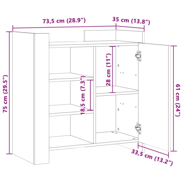 vidaXL Komoda črna 73,5x35x75 cm inženirski les