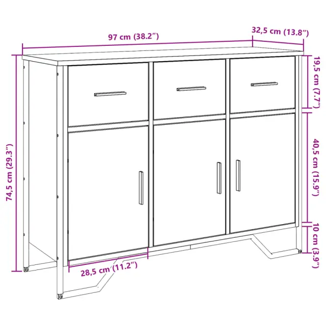 vidaXL Komoda črna 97x32,5x74,5 cm inženirski les