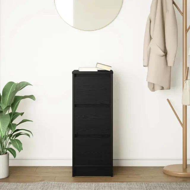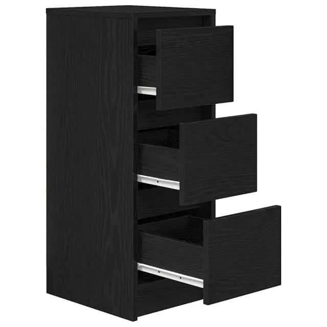 Stranska omara ponuja veliko prostora za shranjevanje, saj pomaga ohranjati red in organiziranost v sobi, hkrati pa združuje praktičnost in estetiko. Stabilen in trpežen material: Inženirski les je trpežen in stabilen material z gladko površino, ki je odporen na vlago, krivljenje in cepljenje, zato je zanesljiva izbira za različne projekte.Veliko prostora za shranjevanje: V bifeju je dovolj prostora za shranjevanje jedilnih potrebščin in drugih gospodinjskih predmetov, da so ti urejeni in dosegljivi.Robustna mizna plošča: Na omarico za shranjevanje lahko postavite okrasne predmete, albume s fotografijami ali manjše rastline.Široka uporaba: To stransko omarico lahko uporabite kot kopalniško ali kuhinjsko omarico ali kot elegantno omarico za shranjevanje v spalnicah, toaletnih prostorih, predsobah, hodnikih in pisarnah, jedilnicah in drugih bivalnih prostorih.Enostavno vzdrževanje: Zaradi gladke površine je omarico enostavno očistiti z vlažno krpo, saj ne potrebuje veliko vzdrževanja. Opozorilo:Za preprečitev prevračanja je treba ta izdelek uporabiti s priloženo napravo za pritrditev na steno.Barva: Črna hrastMaterial: Inženirski lesCelotne dimenzije: 29,5 x 34 x 76 cm (Š x G x V)Dimenzije predalov: 26 x 28,5 x 19,5 cm (Š x G x V)Število predalov: 3Največja skupna nosilnost: 60 kgNajvečja nosilnost predala: 5 kgPotrebno sestavljanje: Da 861635