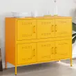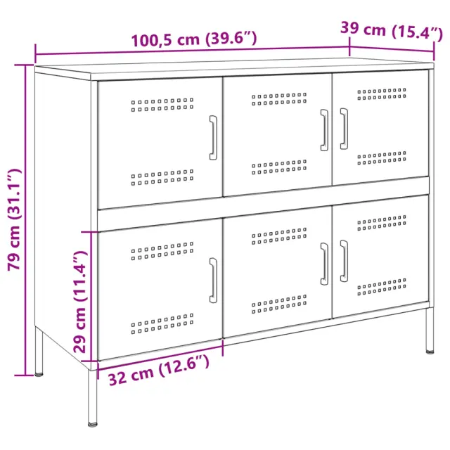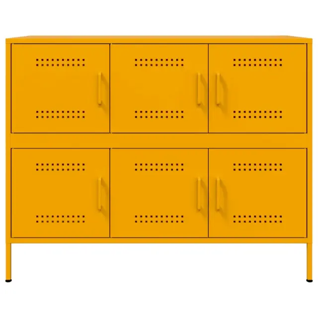 Ta robustna komoda v industrijskem slogu je sodoben dodatek za vašo dnevno sobo ali spalnico. Stabilen material: Komoda je izdelana iz hladno valjanega jekla. Hladno valjano jeklo je vrsta nizkoogljičega jekla, ki se proizvaja z metodo "hladnega valjanja" in obdeluje pri skoraj običajnih sobnih temperaturah. Hladno valjano jeklo ima bolj gladko površino, večjo trdnost in natančnost.Veliko prostora za shranjevanje: Ta bife omarica ponuja veliko prostora za shranjevanje revij, knjig, DVDjev, daljinskih upravljalnikov in drugih majhnih predmetov, da bodo dobro organizirani in na dosegu roke.Nastavljive navojne noge: Ta omarica za shranjevanje je opremljena s štirimi nastavljivimi navojnimi nogami, ki se prilagodijo neravnim površinam ter zagotavljajo stabilnost in ravnotežje.Praktična vrata: Vrata pomagajo ohranjati čist in urejen prostor, saj za seboj skrivajo drobne potrebščine in nered.Enostavno čiščenje: Kovinsko omarico je enostavno očistiti z vlažno krpo, saj ne potrebuje veliko vzdrževanja. Opozorilo:Za preprečitev prevračanja je treba ta izdelek uporabiti s priloženo napravo za pritrditev na steno.Barva: Gorčično rumenaMaterial: Hladno valjano jekloDimenzije: 100,5 x 39 x 79 cm (D x Š x V)Maksimalna obremenitev: 30 kgS 4 nastavljivimi navojnimi nogamiS 6 predelki za shranjevanjeS 6 vratiPotrebno sestavljanje: DaLegal Documents:Več informacij o tem, kako preprečiti prevračanje pohištva, je na voljo tukaj 843099
