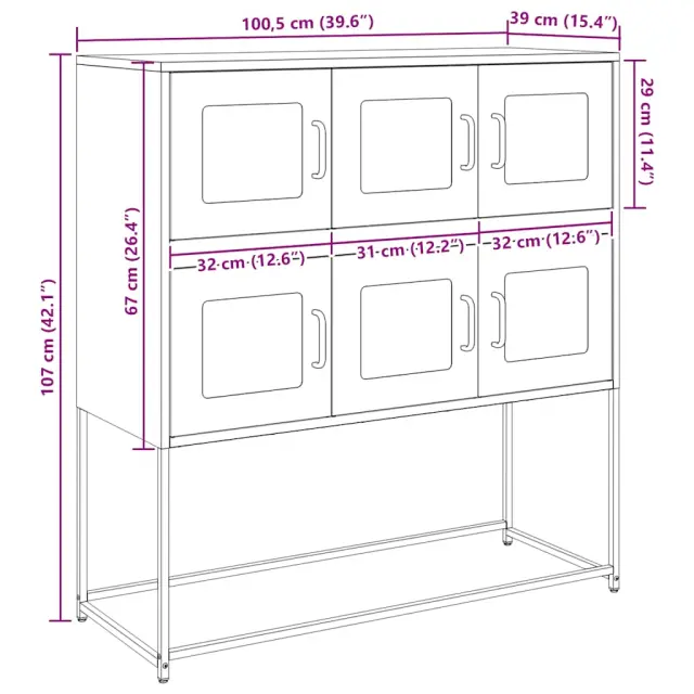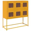 Ta kredenca je dekorativna in praktična za shranjevanje, zato je odličen dodatek za vaš dom. Stabilen in dolgotrajen okvir: Jeklo je močno, stabilno in trpežno, zato je idealna izbira za številne aplikacije, od proizvodnje pohištva do gradbeništva.Praktični ročaji: Omare za shranjevanje so opremljene z ročaji, ki omogočajo udoben oprijem, omogočajo enostavno odpiranje in zapiranje omarice ter ji dodajajo dodatno lepoto.Veliko prostora za shranjevanje: V bifeju je dovolj prostora za shranjevanje jedilnih potrebščin in drugih gospodinjskih predmetov, da so ti urejeni in dosegljivi.Kovinske noge: Kovinske noge dodajo vaši notranjosti umirjen slog, hkrati pa zagotavljajo stabilnost.Široka uporaba: To stransko omarico lahko uporabite kot kopalniško ali kuhinjsko omarico ali kot elegantno omarico za shranjevanje v spalnicah, toaletnih prostorih, predsobah, hodnikih in pisarnah, jedilnicah in drugih bivalnih prostorih. Opozorilo:Za preprečitev prevračanja je treba ta izdelek uporabiti s priloženo napravo za pritrditev na steno.Barva: Gorčično rumenaMaterial: Hladno valjano jekloDimenzije: 100,5 x 39 x 107 cm (D x Š x V)Potrebno sestavljanje: Da 853425