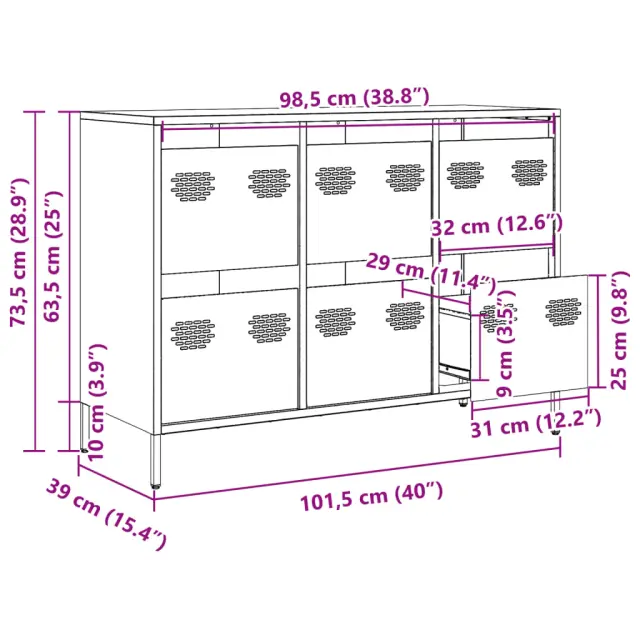 vidaXL Komoda gorčično rumena 101,5x39x73,5 cm hladno valjano jeklo