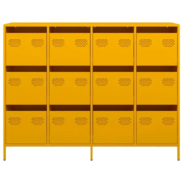 Ta praktična komoda je resnično privlačen dodatek za vaš dom. Robustno in stabilno: Hladno valjano jeklo je vrsta nizkoogljičnega jekla, ki se proizvaja s postopkom hladnega valjanja in obdeluje pri skoraj običajnih sobnih temperaturah. Hladno valjano jeklo ima bolj gladko površino, večjo trdnost in natančnost.Veliko prostora za shranjevanje: V omarici s predali je dovolj prostora za shranjevanje, da bodo različne vsakodnevne potrebščine dobro urejene in dosegljive.Robustna mizna plošča: Na njej lahko postavite okrasne predmete, albume s fotografijami ali manjše rastline.Enostavno vzdrževanje: Zaradi gladke površine je kovinsko kredenco enostavno očistiti z vlažno krpo in zahteva manj vzdrževanja. Opozorilo:Za preprečitev prevračanja je treba ta izdelek uporabiti s priloženo napravo za pritrditev na steno.Barva: Gorčično rumenaMaterial: Hladno valjano jekloDimenzije: 135 x 39 x 103,5 cm (D x Š x V)Z 12 predaliPotrebno sestavljanje: Da 3307176
