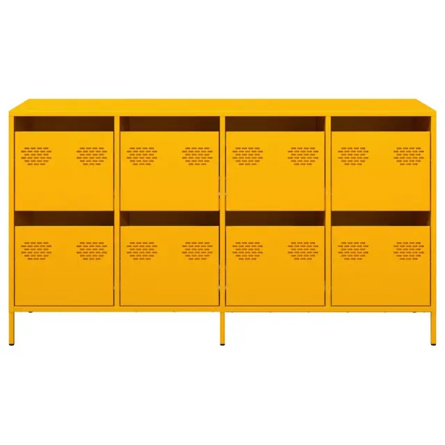 Ta praktična komoda je resnično privlačen dodatek za vaš dom. Robustno in stabilno: Hladno valjano jeklo je vrsta nizkoogljičnega jekla, ki se proizvaja s postopkom hladnega valjanja in obdeluje pri skoraj običajnih sobnih temperaturah. Hladno valjano jeklo ima bolj gladko površino, večjo trdnost in natančnost.Veliko prostora za shranjevanje: V omarici s predali je dovolj prostora za shranjevanje, da bodo različne vsakodnevne potrebščine dobro urejene in dosegljive.Robustna mizna plošča: Na njej lahko postavite okrasne predmete, albume s fotografijami ali manjše rastline.Enostavno vzdrževanje: Zaradi gladke površine je kovinsko kredenco enostavno očistiti z vlažno krpo in zahteva manj vzdrževanja. Opozorilo:Za preprečitev prevračanja je treba ta izdelek uporabiti s priloženo napravo za pritrditev na steno.Barva: Gorčično rumenaMaterial: Hladno valjano jekloDimenzije: 135 x 39 x 73,5 cm (D x Š x V)Z 8 predaliPotrebno sestavljanje: Da 3307170