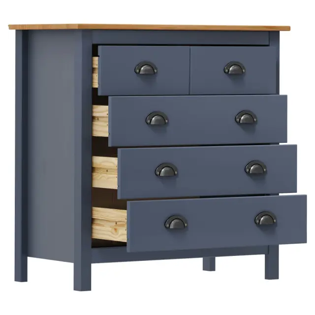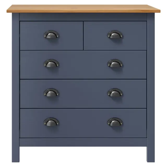 Ta moderna komoda bo brezčasen dodatek za dekor v vaših notranjih prostorih. Kompaktna omarica ima 5 predalov, ki se lepo odpirajo, ter nudi dovolj prostora za organizirano shranjevanje manjših stvari, da bodo vedno pri roki. Pravokotna površina je primerna za postavitev košare s sadjem ali razstavljanje okrasnih stvari, kot so okvirji s slikami ali lončnice. Organizator za shranjevanje boste zlahka sestavili. Stranska omarica je preprosta za čiščenje s suho krpo.Barva: Siva in medeno rjavaMaterial: Trdna borovinaDimenzije: 79 x 40 x 80 cm (Š x G x V)S 5 predaliZ ročaji v obliki skodelicePotrebno sestavljanje: DaOPOZORILO: Ta izdelek uporabljajte s priloženo napravo za pritrditev na steno, da preprečite prevračanje.Zbirka: HillLegal Documents:Več informacij o tem, kako preprečiti prevračanje pohištva, je na voljo tukaj 288917