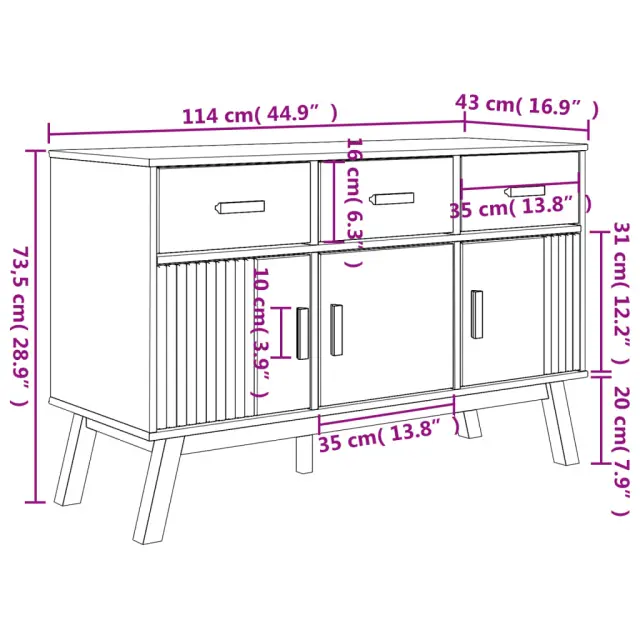 vidaXL Komoda OLDEN rjava 114x43x73,5 cm trdna borovina