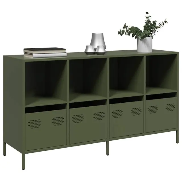 vidaXL Komoda olivno zelena 135x39x73,5 cm hladno valjano jeklo