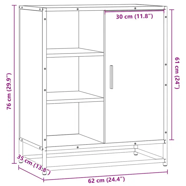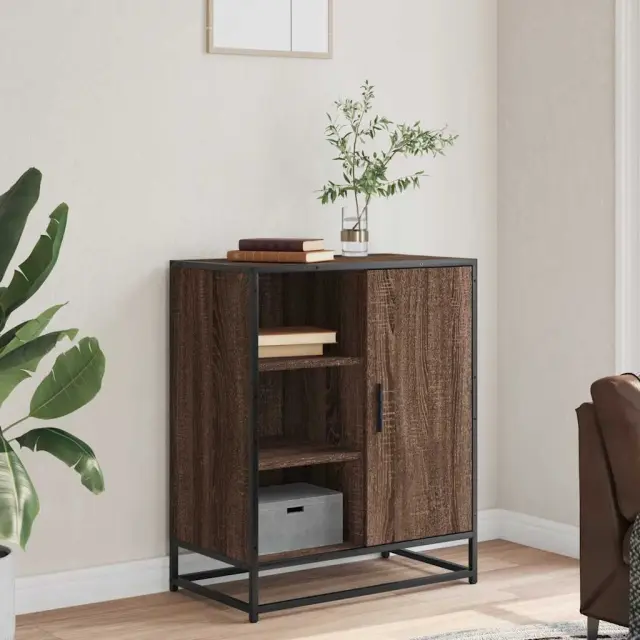 Ta moderna komoda z brezčasnim videzom je odličen dodatek za vaš dom. Stabilen in dolgotrajen okvir: Kovinski okvir omarice za shranjevanje izboljša vaše notranje prostore z industrijskim slogom ter zagotavlja izjemno vzdržljivost, stabilnost in odpornost proti koroziji.Stabilen in trpežen material: Inženirski les je trpežen in stabilen material z gladko površino, ki je odporen na vlago, krivljenje in cepljenje, zato je zanesljiva izbira za različne projekte.Veliko prostora za shranjevanje: V bifeju je dovolj prostora za shranjevanje jedilnih potrebščin in drugih gospodinjskih predmetov, da so ti urejeni in dosegljivi.Praktični ročaji: Omarica za predsobo je opremljena z ročaji, ki omogočajo udoben oprijem, omogočajo enostavno odpiranje in zapiranje omare, hkrati pa ji dodajajo dodatno lepoto.Široka uporaba: To stransko omarico lahko uporabite kot kopalniško ali kuhinjsko omarico ali kot elegantno omarico za shranjevanje v spalnicah, toaletnih prostorih, predsobah, hodnikih in pisarnah, jedilnicah in drugih bivalnih prostorih. Opozorilo:Za preprečitev prevračanja je treba ta izdelek uporabiti s priloženo napravo za pritrditev na steno.Barva: Rjav hrastMaterial: Inženirski les, kovinaDimenzije: 62 x 35 x 76 cm (Š x G x V)Maks. nosilnost (skupaj): 60 kgPotrebno sestavljanje: Da 848998