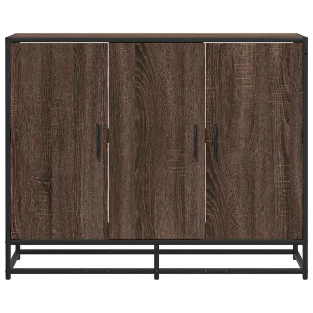 Ta moderna komoda z brezčasnim videzom je odličen dodatek za vaš dom. Stabilen in dolgotrajen okvir: Kovinski okvir omarice za shranjevanje izboljša vaše notranje prostore z industrijskim slogom ter zagotavlja izjemno vzdržljivost, stabilnost in odpornost proti koroziji.Stabilen in trpežen material: Inženirski les je trpežen in stabilen material z gladko površino, ki je odporen na vlago, krivljenje in cepljenje, zato je zanesljiva izbira za različne projekte.Veliko prostora za shranjevanje: V bifeju je dovolj prostora za shranjevanje jedilnih potrebščin in drugih gospodinjskih predmetov, da so ti urejeni in dosegljivi.Praktični ročaji: Omarica za predsobo je opremljena z ročaji, ki omogočajo udoben oprijem, omogočajo enostavno odpiranje in zapiranje omare, hkrati pa ji dodajajo dodatno lepoto.Široka uporaba: To stransko omarico lahko uporabite kot kopalniško ali kuhinjsko omarico ali kot elegantno omarico za shranjevanje v spalnicah, toaletnih prostorih, predsobah, hodnikih in pisarnah, jedilnicah in drugih bivalnih prostorih. Opozorilo:Za preprečitev prevračanja je treba ta izdelek uporabiti s priloženo napravo za pritrditev na steno.Barva: Rjav hrastMaterial: Inženirski les, kovinaDimenzije: 94 x 35 x 76 cm (Š x G x V)Največja zmogljivost teže (skupna): (70 kg)Potrebno sestavljanje: Da 849008