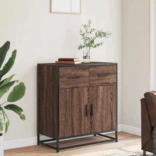 Ta moderna komoda z brezčasnim videzom je odličen dodatek za vaš dom. Stabilen in dolgotrajen okvir: Kovinski okvir omarice za shranjevanje izboljša vaše notranje prostore z industrijskim slogom ter zagotavlja izjemno vzdržljivost, stabilnost in odpornost proti koroziji.Stabilen in trpežen material: Inženirski les je trpežen in stabilen material z gladko površino, ki je odporen na vlago, krivljenje in cepljenje, zato je zanesljiva izbira za različne projekte.Veliko prostora za shranjevanje: V bifeju je dovolj prostora za shranjevanje jedilnih potrebščin in drugih gospodinjskih predmetov, da so ti urejeni in dosegljivi.Praktični ročaji: Omarica za predsobo je opremljena z ročaji, ki omogočajo udoben oprijem, omogočajo enostavno odpiranje in zapiranje omare, hkrati pa ji dodajajo dodatno lepoto.Široka uporaba: To stransko omarico lahko uporabite kot kopalniško ali kuhinjsko omarico ali kot elegantno omarico za shranjevanje v spalnicah, toaletnih prostorih, predsobah, hodnikih in pisarnah, jedilnicah in drugih bivalnih prostorih. Opozorilo:Za preprečitev prevračanja je treba ta izdelek uporabiti s priloženo napravo za pritrditev na steno.Barva: Rjav hrastMaterial: Inženirski les, kovinaDimenzije: 68 x 35 x 76 cm (Š x G x V)Maks. nosilnost (skupaj): 60 kgPotrebno sestavljanje: DaLegal Documents:Več informacij o tem, kako preprečiti prevračanje pohištva, je na voljo tukaj 848983