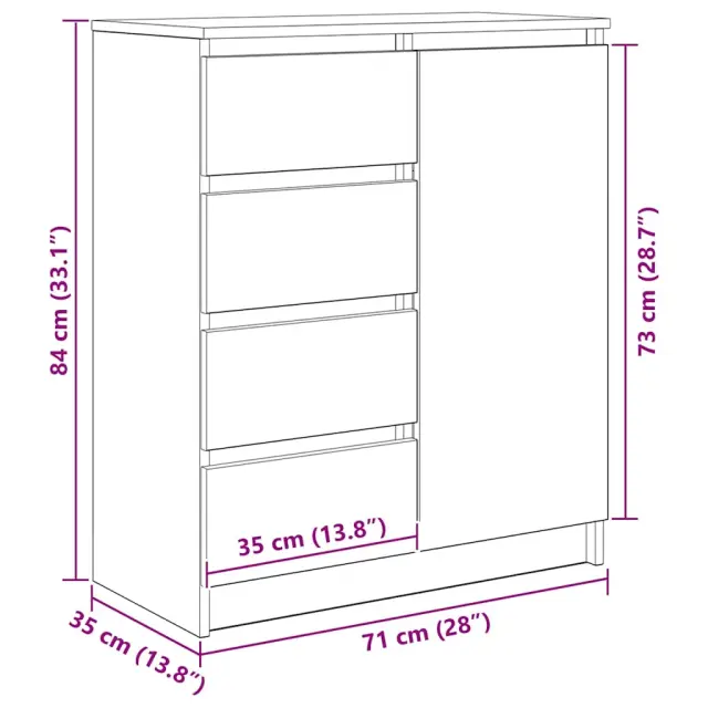 vidaXL Komoda s predali betonsko siva 71x35x84 cm inženirski les