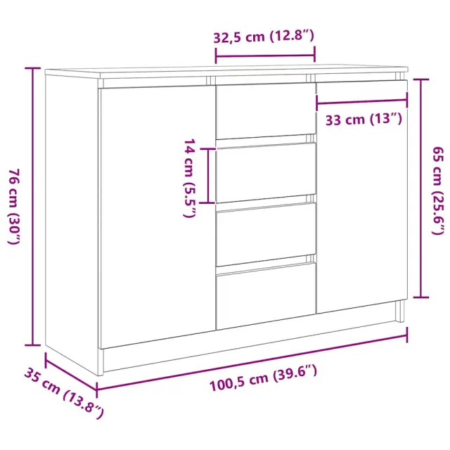 vidaXL Komoda s predali starinski les 100,5x35x76 cm inženirski les