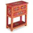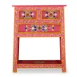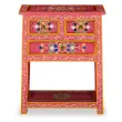 Edinstvena komoda bo v vašo dnevno sobo takoj vnesla pridih barve, tako da bo vaš dekor resnično zaživel. Komoda je ročno izdelana iz mangovega lesa, ki je hkrati trpežen in čudovit, ročna izdelava pa prispeva k spektakularnemu retro stilu. Vsak korak v procesu izdelave je izveden z izjemno previdnostjo, ne glede na to, ali gre za brušenje, barvanje ali lakiranje. Komoda ima ročno barvane okrasne detajle, ki ustvarjajo topel in bogat učinek. Ta omarica ima 3 predale in 1 polico za organizirano shranjevanje manjših stvari, ki jih potrebujete pri roki. Značilni ročaji omogočajo lažje odpiranje predalov. Izdelek je že sestavljen; omarice ni potrebno sestaviti.Barva: Večbarvno (roza osnova)Material: Trden mangov lesDimenzije: 60 x 30 x 76 cm (Š x G x V)Z bogatimi, ročno barvanimi okrasnimi detajliBrušeno, barvano in lakiranoRočno izdelanoS 3 predali in 1 policoMontaža ni potrebnaOPOZORILO: Za preprečitev prevračanja je treba ta izdelek uporabiti s priloženimi dodatki za pritrditev na stenoLegal Documents:Več informacij o tem, kako preprečiti prevračanje pohištva, je na voljo tukaj 244841