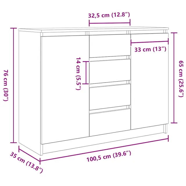 vidaXL Komoda s predali črna hrast 100,5x35x76 cm inženirski les