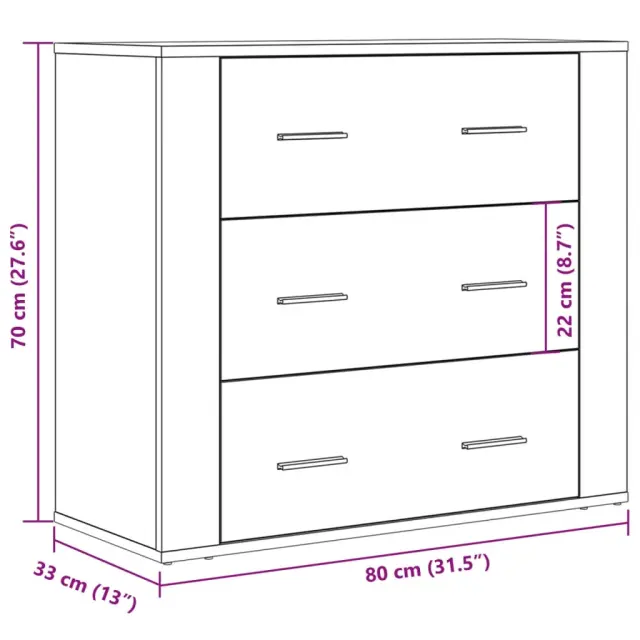 Ta praktična komoda bo zadovoljila različne potrebe ter je idealen dodatek za vaš prostor. Material z dolgo življenjsko dobo: Inženirski les se ponaša z izjemno kakovostjo, gladko površino ter močjo, stabilnostjo in odpornostjo na vlago.Dovolj prostora za shranjevanje: Ta omarica s 3 predali nudi dovolj prostora za shranjevanje različnih vsakodnevnih stvari, da bodo dobro organizirane in na dosegu roke.Trdna površina: Na površino te omarice lahko postavite tudi svoje najljubše slike, dekoracije ali rože ter tako popestrite svoj prostor. Opozorilo:Za preprečitev prevračanja je treba ta izdelek uporabiti s priloženo napravo za pritrditev na steno.Barva: Starinski lesMaterial: Inženirski lesDimenzije: 80 x 33 x 70 cm (Š x G x V) 857085
