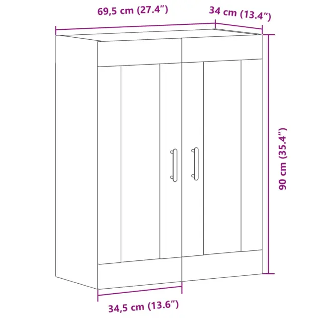Ta kredenca je dekorativna in praktična za shranjevanje, zato je odličen dodatek za vaš dom. Stabilen in trpežen material: Inženirski les je trpežen in stabilen material z gladko površino, ki je odporen na vlago, krivljenje in cepljenje, zato je zanesljiva izbira za različne projekte.Praktični ročaji: Omare za shranjevanje so opremljene z ročaji, ki omogočajo udoben oprijem, omogočajo enostavno odpiranje in zapiranje omarice ter ji dodajajo dodatno lepoto.Praktična vrata: Vrata omarice za kredenco zagotavljajo zaprt prostor za shranjevanje, da bodo vaše stvari urejene, zaščitene in nevidne.Široka uporaba: To stransko omarico lahko uporabite kot kopalniško ali kuhinjsko omarico ali kot elegantno omarico za shranjevanje v spalnicah, toaletnih prostorih, predsobah, hodnikih in pisarnah, jedilnicah in drugih bivalnih prostorih. Opozorilo:Za preprečitev prevračanja je treba ta izdelek uporabiti s priloženo napravo za pritrditev na steno.Barva: Starinski lesMaterial: Inženirski les, kovinaCelotne dimenzije: 69,5 x 34 x 90 cm (D x Š x V)Potrebno sestavljanje: Da 857308