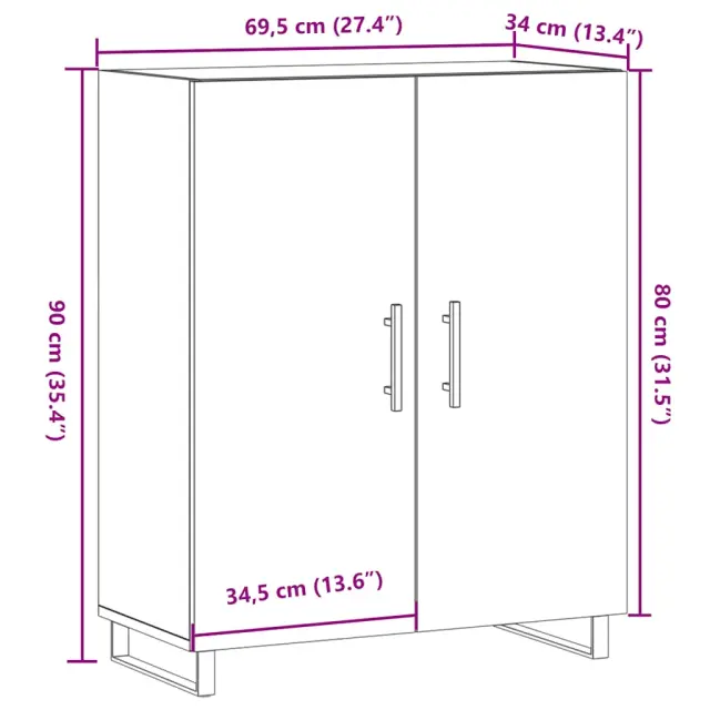 Ta klasična komoda z brezčasnim videzom je odličen dodatek za vaš dom. Vzdržljiv material: Inženirski les se ponaša z izjemno kakovostjo, gladko površino ter močjo, stabilnostjo in odpornostjo na vlago. Ta omarica iz inženirskega lesa je preprosta za čiščenje z vlažno krpo.Veliko prostora za shranjevanje: V stranski omarici je dovolj prostora za shranjevanje, da bodo različne vsakodnevne potrebščine dobro urejene in dosegljive.Razstavna funkcija: Površina komode je odlična za razstavljanje vaših okrasnih predmetov, foto albumov ali majhnih rastlin.Praktični ročaji: Omarica je opremljena z ročaji, ki omogočajo udoben oprijem, omogočajo enostavno odpiranje in zapiranje omarice, hkrati pa ji dajejo dodatno lepoto.Kovinske noge: Kovinske noge dodajo vaši notranjosti umirjen slog, hkrati pa zagotavljajo stabilnost. Opozorilo:Za preprečitev prevračanja je treba ta izdelek uporabiti s priloženo napravo za pritrditev na steno.Barva: Starinski lesMaterial: Inženirski les, kovinaDimenzije: 69,5 x 34 x 90 cm (Š x G x V)Potrebno sestavljanje: Da 857181
